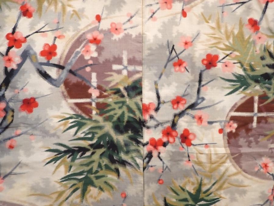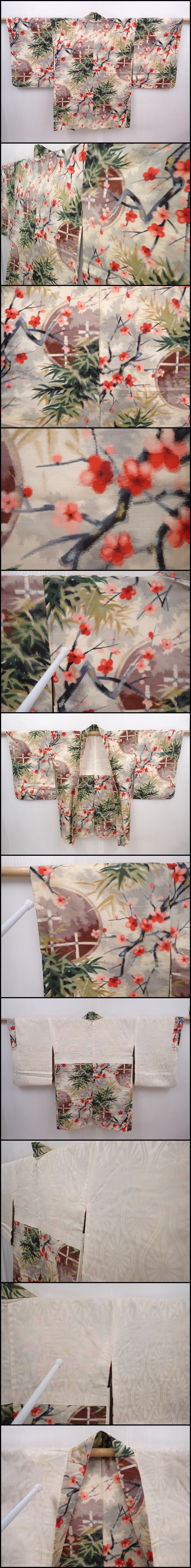 6012T01z420 Vintage Japanese Kimono Silk MEISEN HAORI Plum blossom