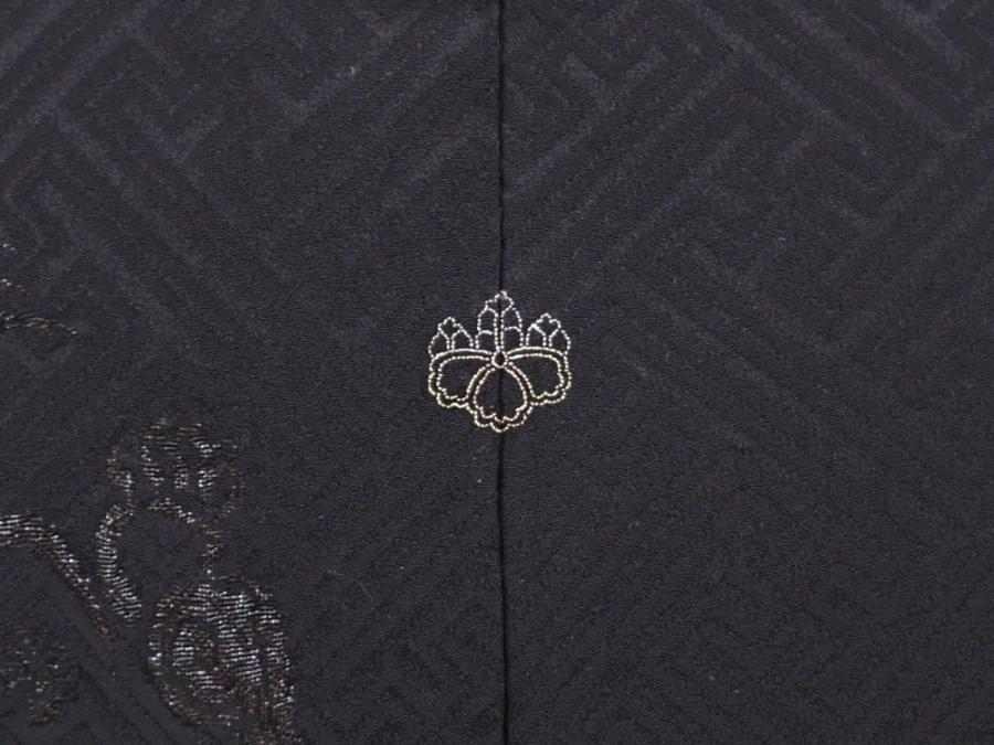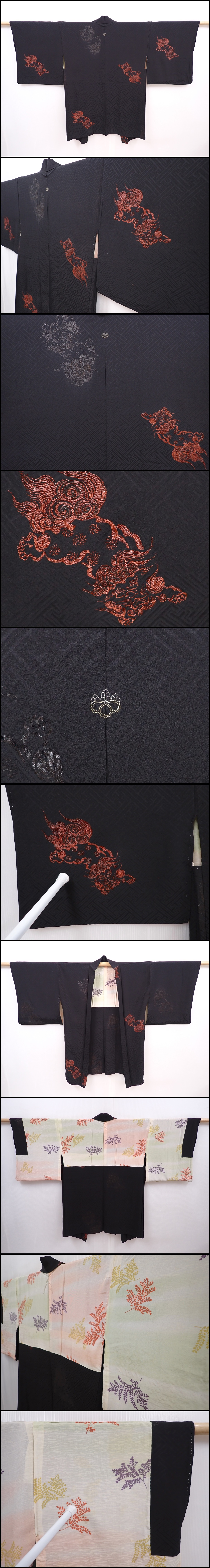 6012T03z570 Vintage Japanese Kimono Silk HAORI Shishi Black