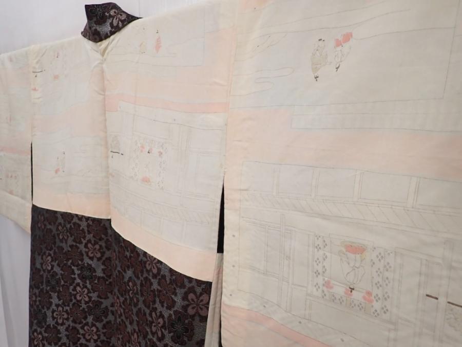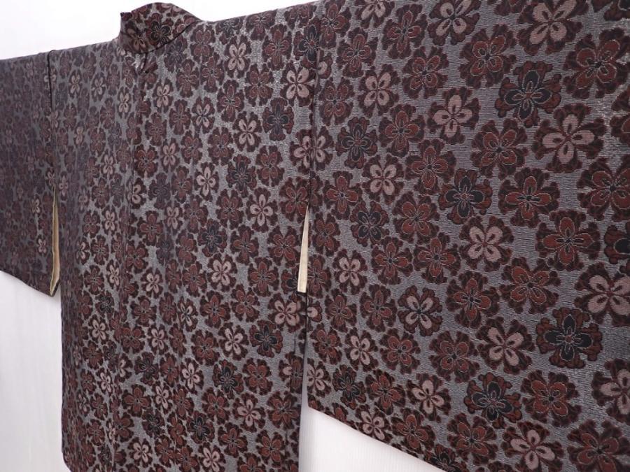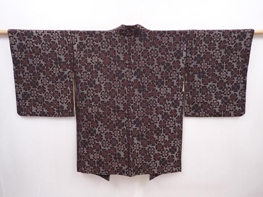 6012T07z730 Vintage Japanese Kimono Silk URUSHI HAORI Flower Silver