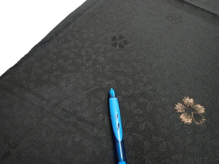 3D03z110 Japanese Kimono Silk FABRIC Sakura Black 68.5x14.8