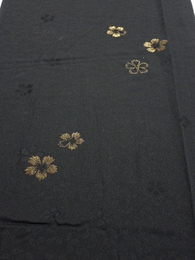 3D06z110 Japanese Kimono Silk FABRIC Sakura Black 68.5x15.0