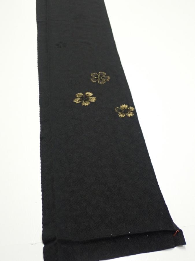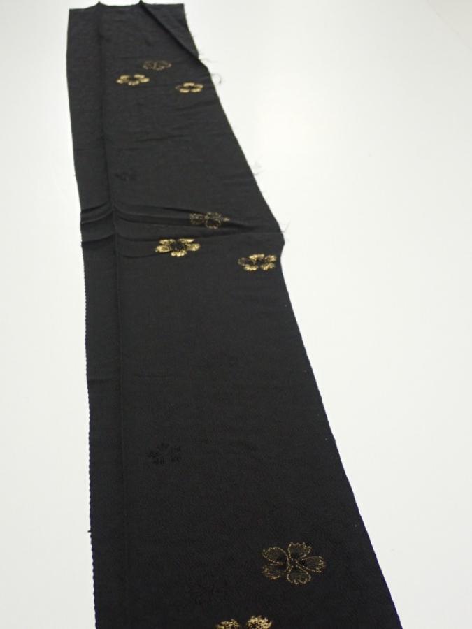 3D08z50 Japanese Kimono Silk FABRIC Sakura Black 62.6x7.3