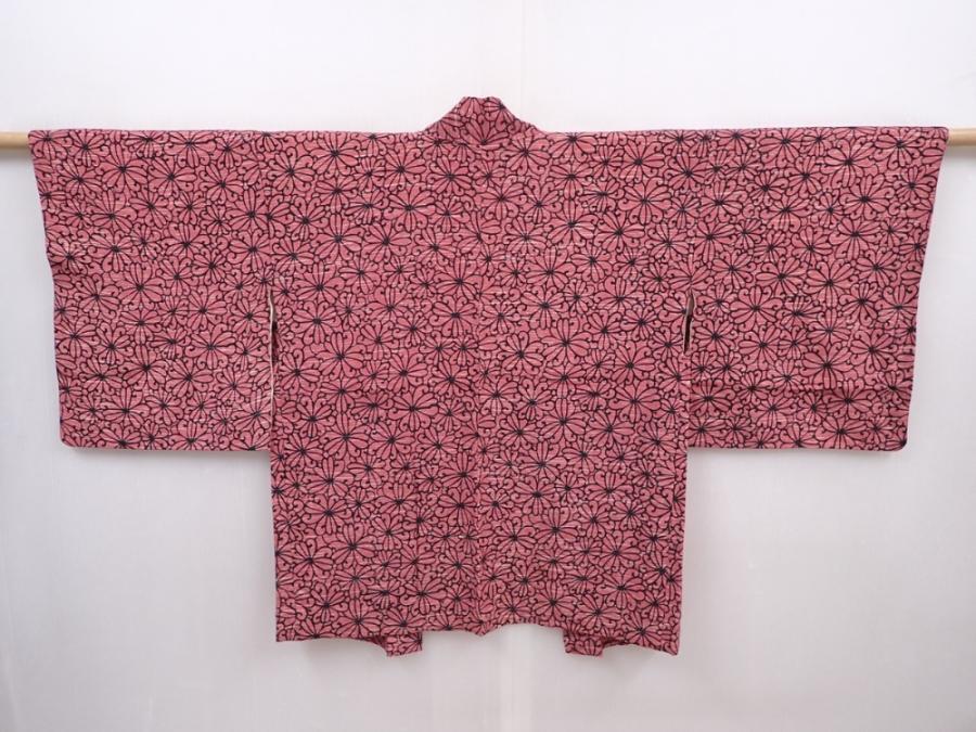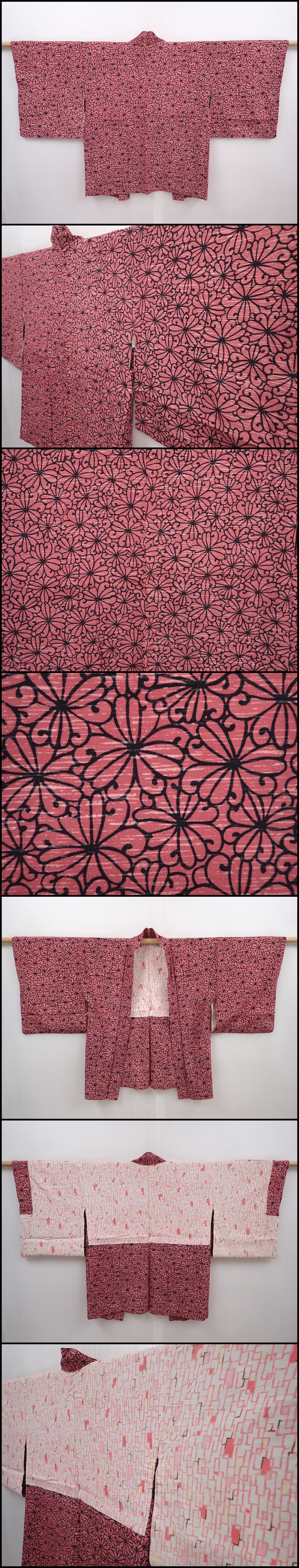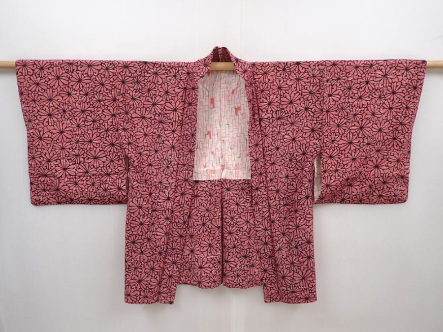 6015T06z410 Vintage Japanese Kimono Silk HAORI Flower Dark pink