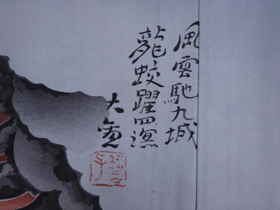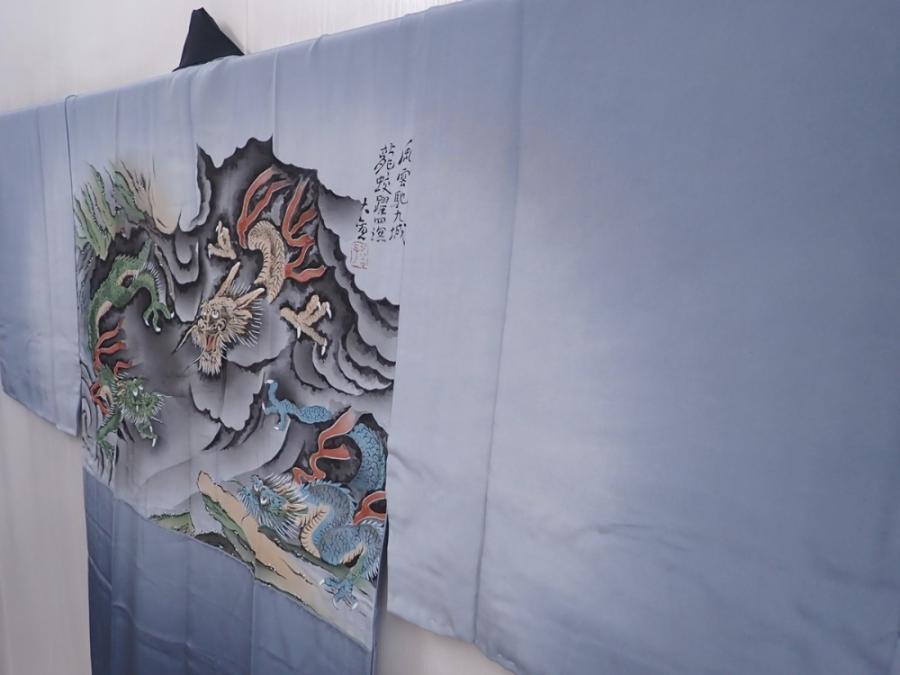 6015T14z410 Japanese Kimono Silk Men's JUBAN Dragon Blue-Gray