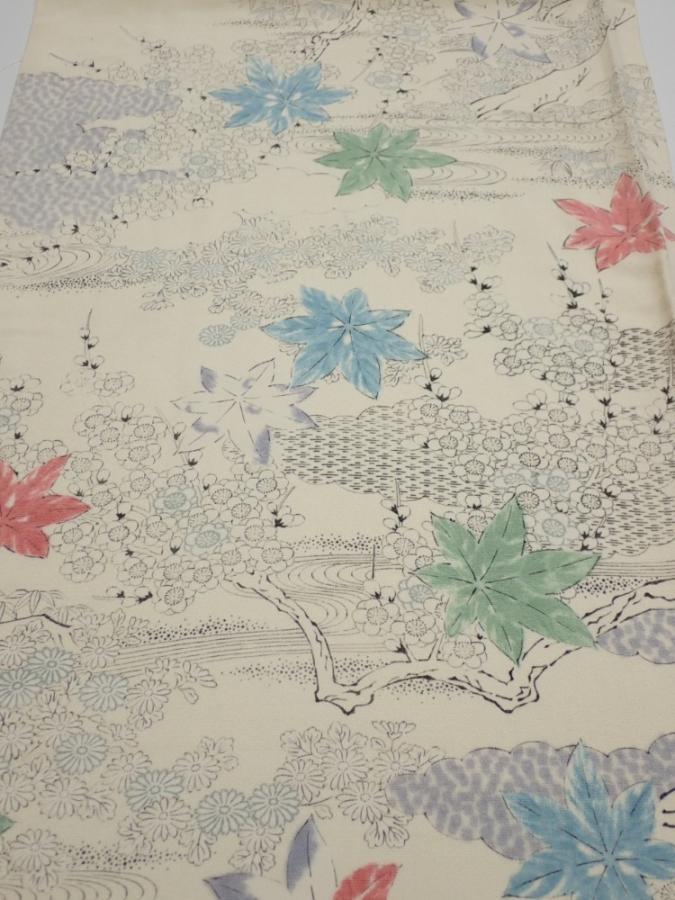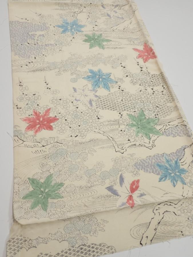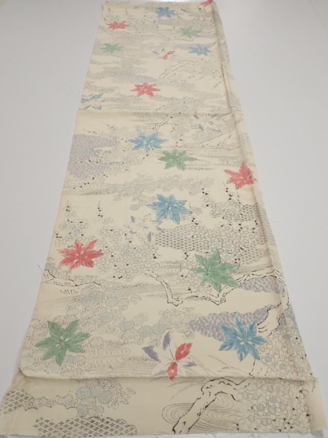 3D01z70 Japanese Kimono Silk FABRIC Maple Smoky white 45.7x14.2