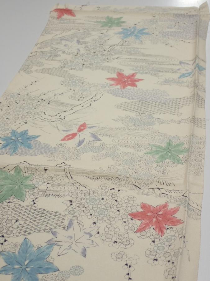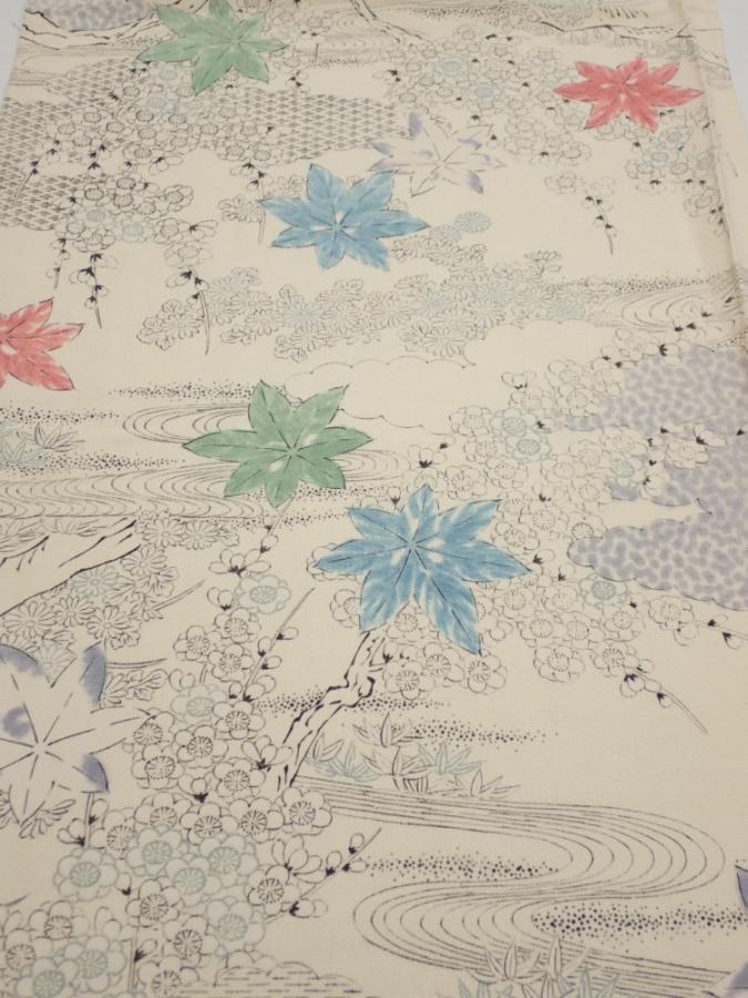 3D02z70 Japanese Kimono Silk FABRIC Maple Smoky white 46.1x14.2