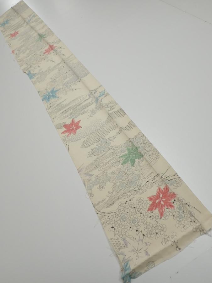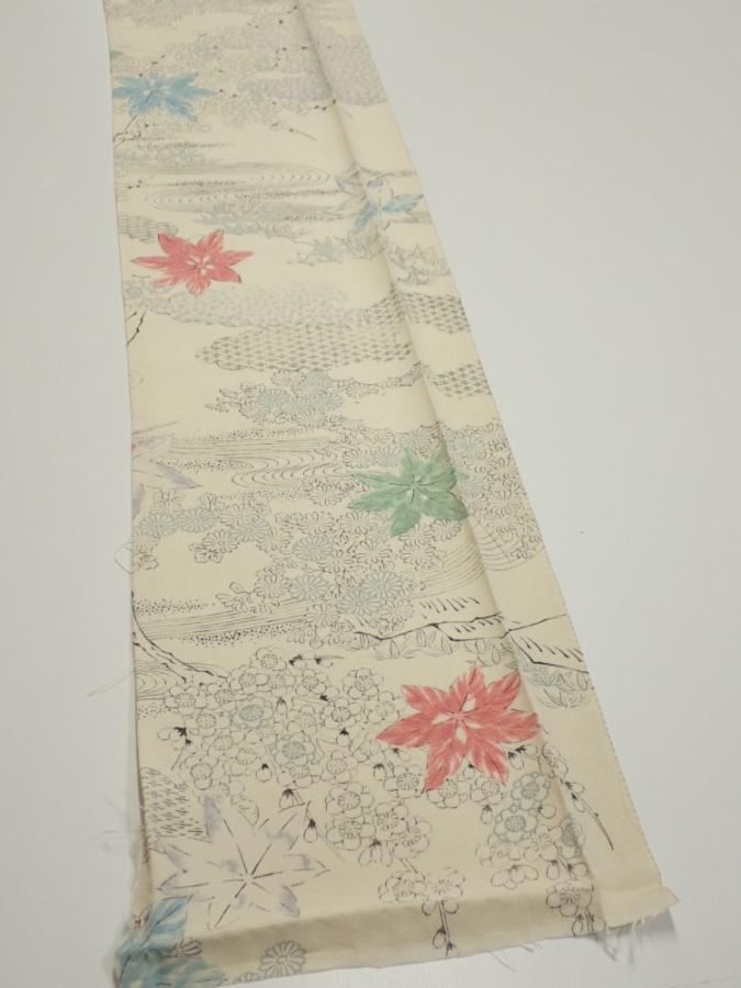 3D08z50 Japanese Kimono Silk FABRIC Maple Smoky white 58.3x7.7