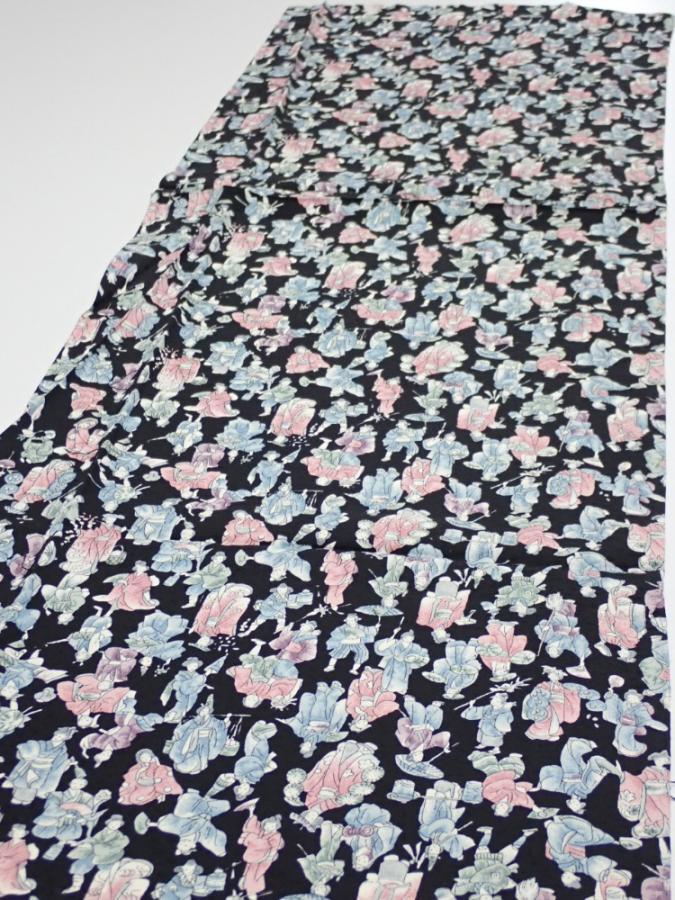 3D04z70 Japanese Kimono Silk FABRIC Edo era people Black 62.2x14.2