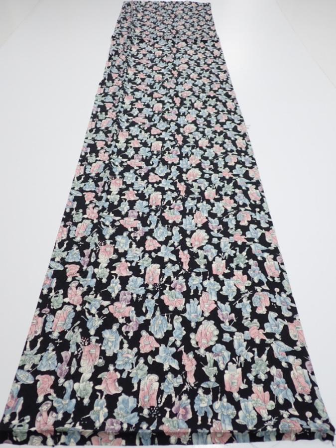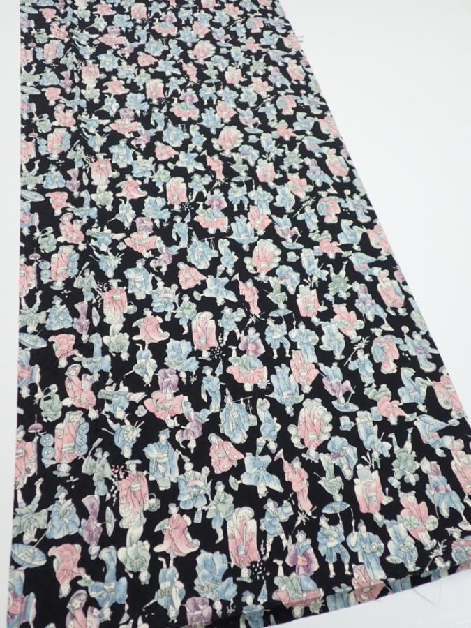 3D06z70 Japanese Kimono Silk FABRIC Edo era people Black 62.2x14.2