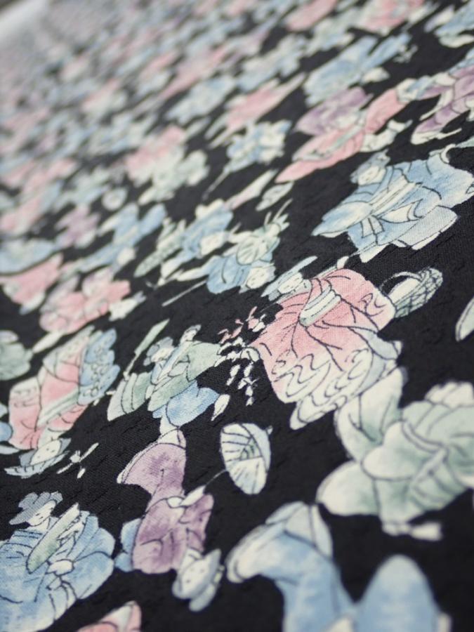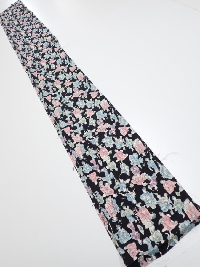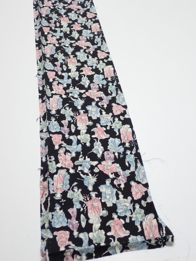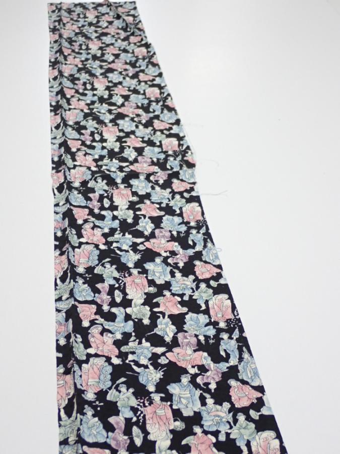 3D07z30 Japanese Kimono Silk FABRIC Edo era people Black 58.3x7.1