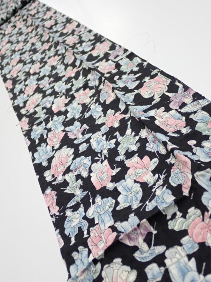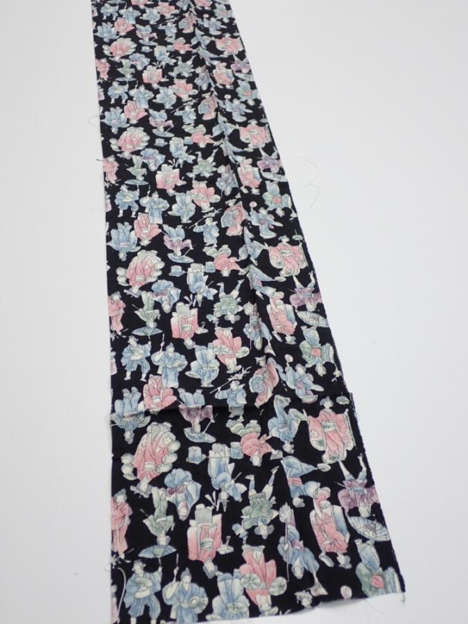 3D09z50 Japanese Kimono Silk FABRIC Edo era people Black 84.6x7.1