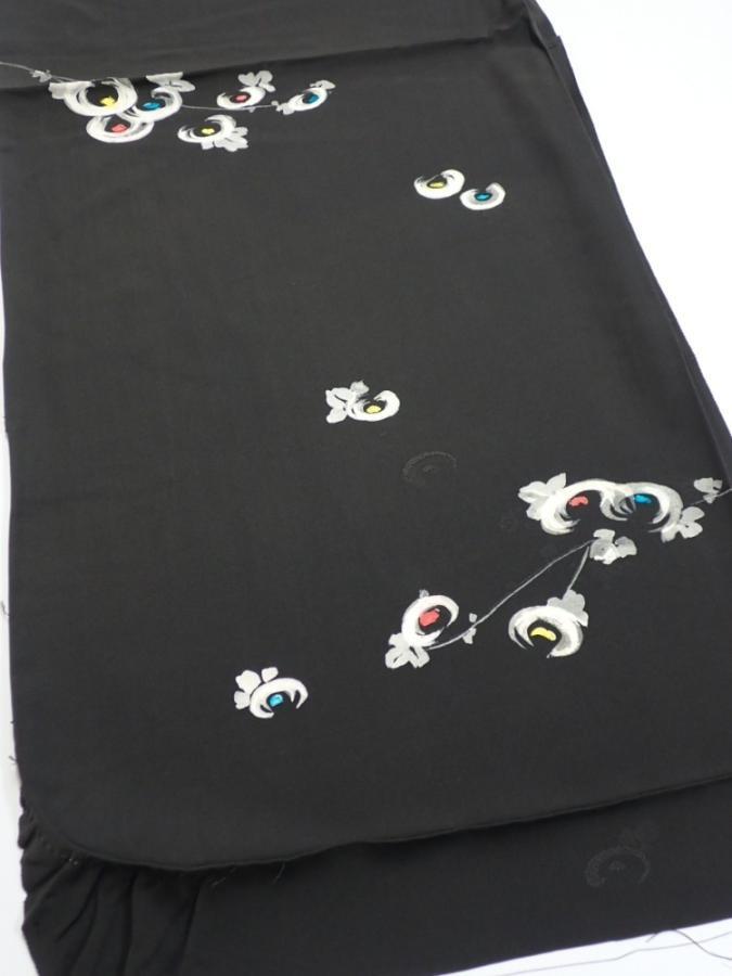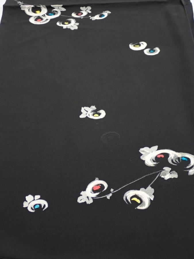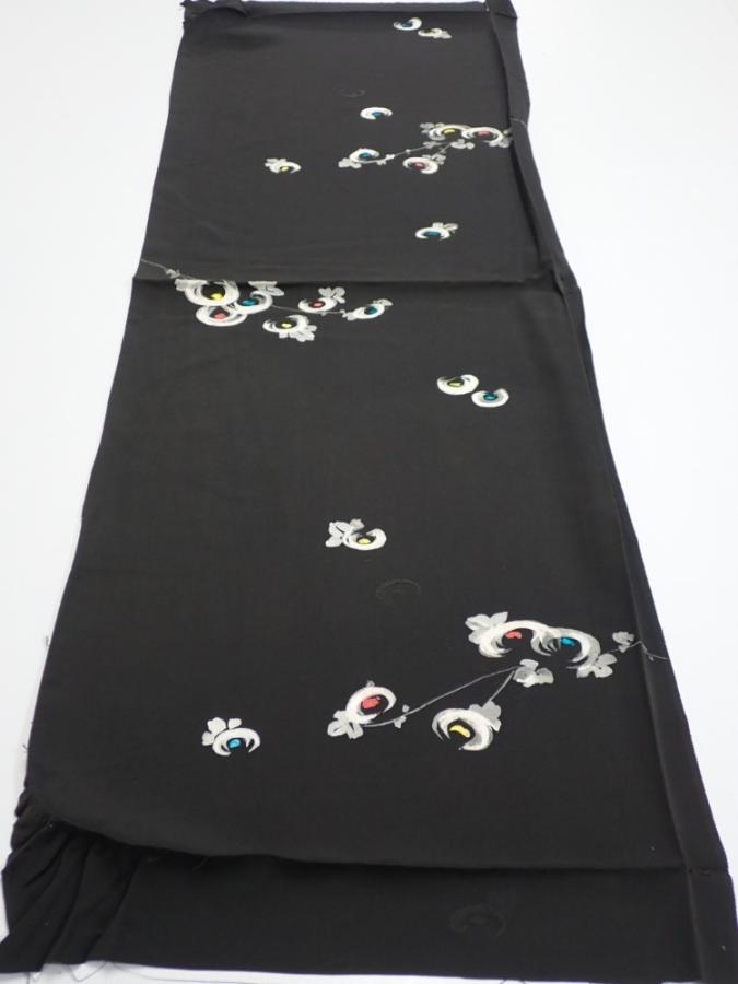 3D01z60 Japanese Kimono Silk FABRIC Chrysanthemum Black 39.4x14.2