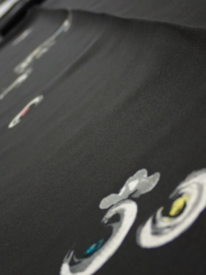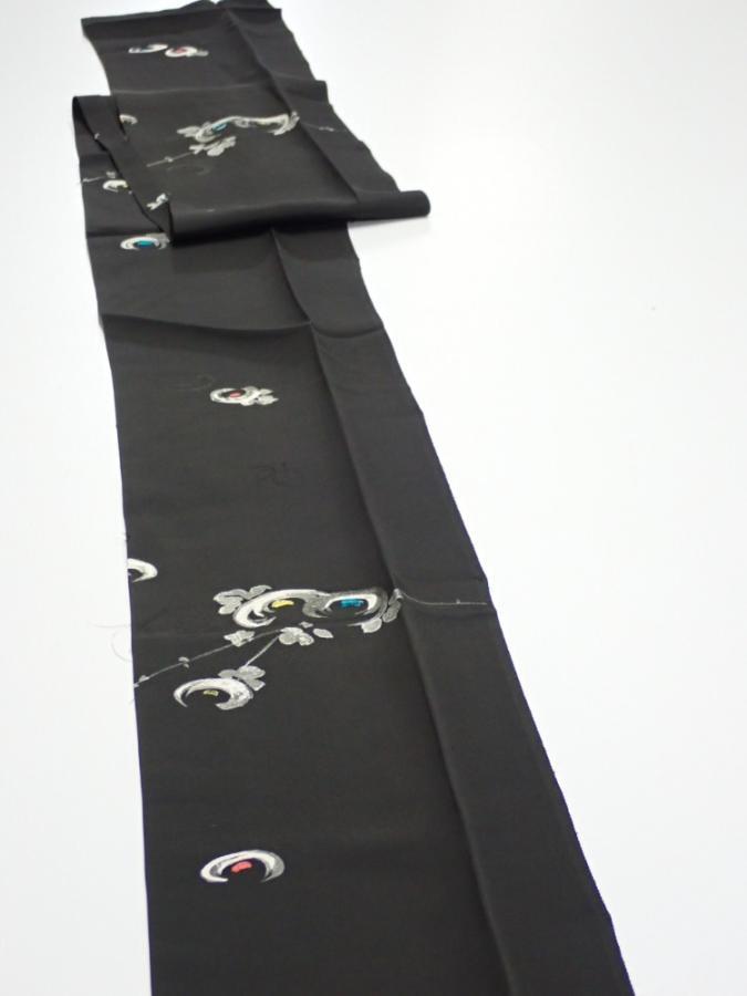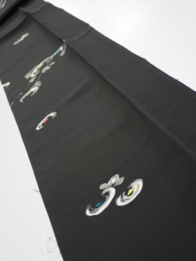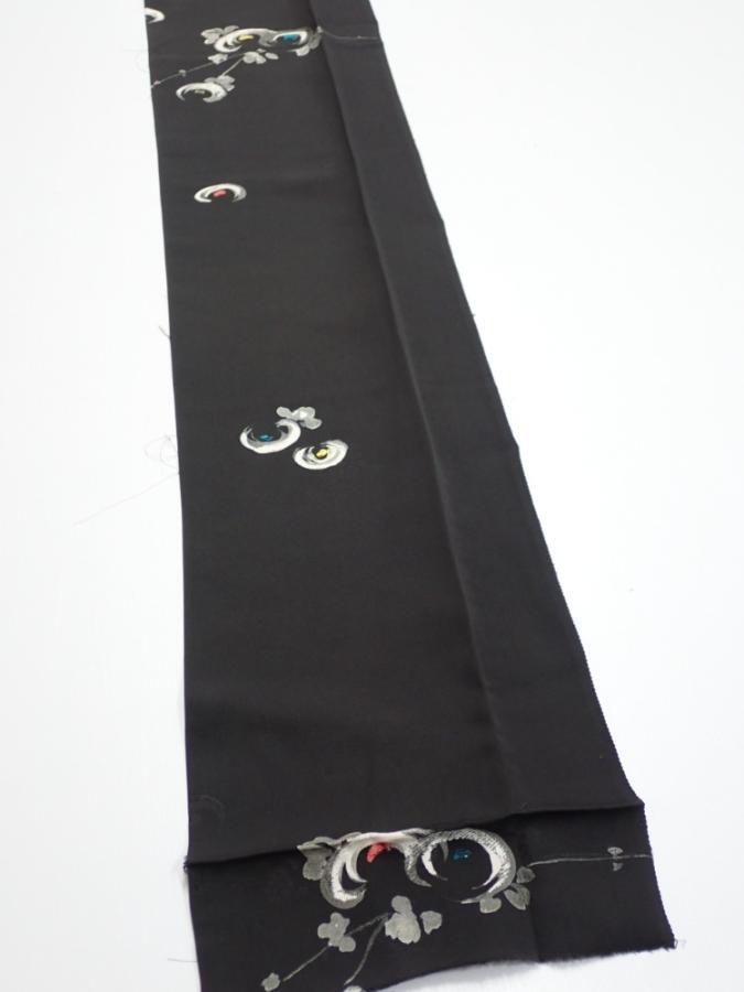 3D09z60 Japanese Kimono Silk FABRIC Chrysanthemum Black 81.1x6.9