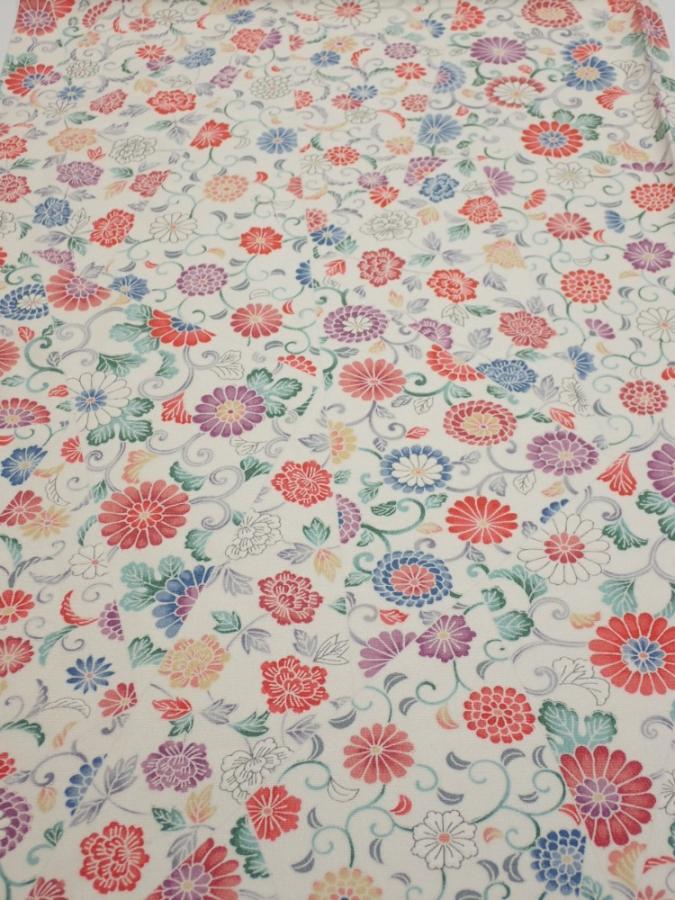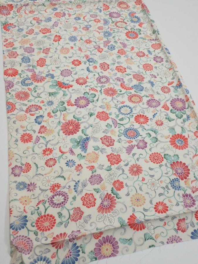 4A01z60 Japanese Kimono Silk FABRIC Flowers Smoky white 44.1x14.4