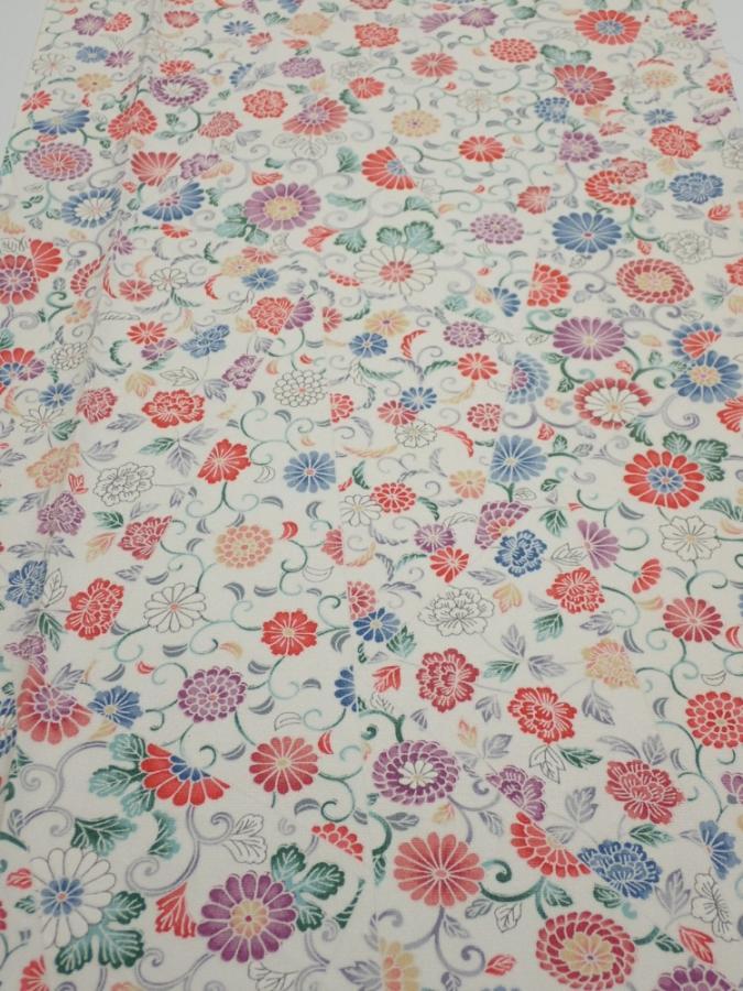 4A03z90 Japanese Kimono Silk FABRIC Flowers Smoky white 63.8x14.4