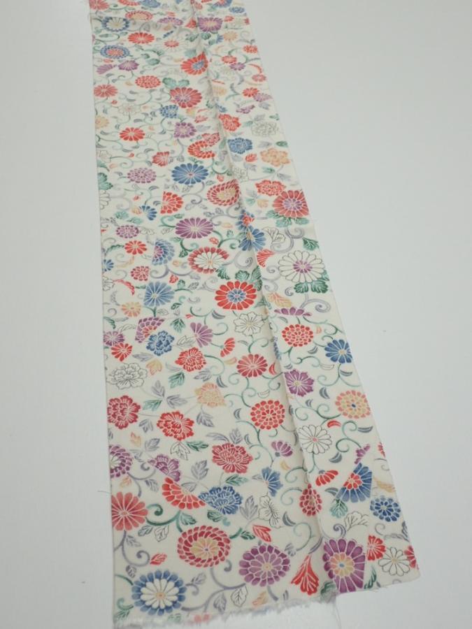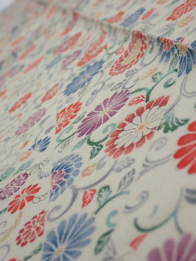 4A07z40 Japanese Kimono Silk FABRIC Flowers Smoky white 55.9x7.3