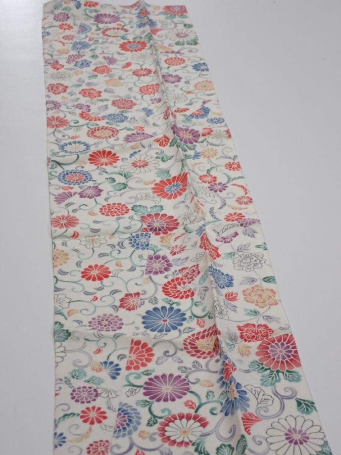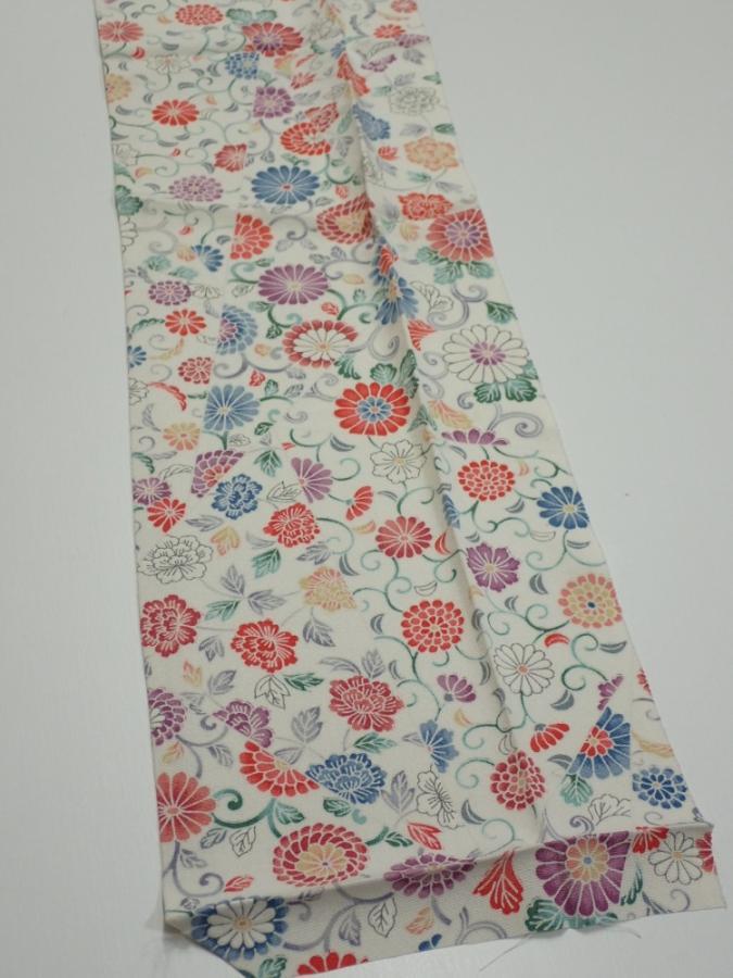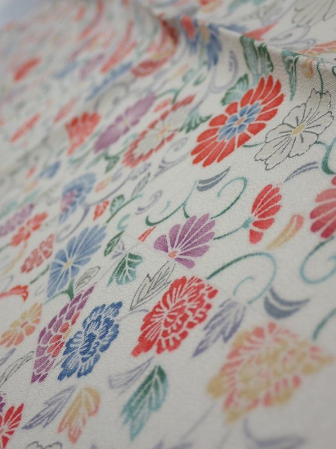 4A08z30 Japanese Kimono Silk FABRIC Flowers Smoky white 35.8x7.1