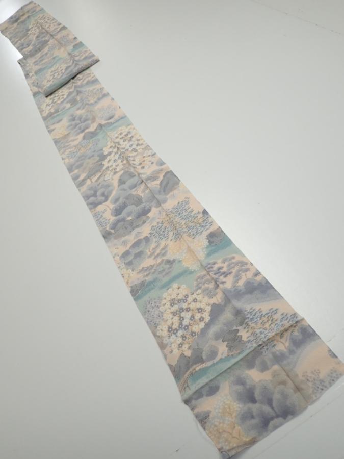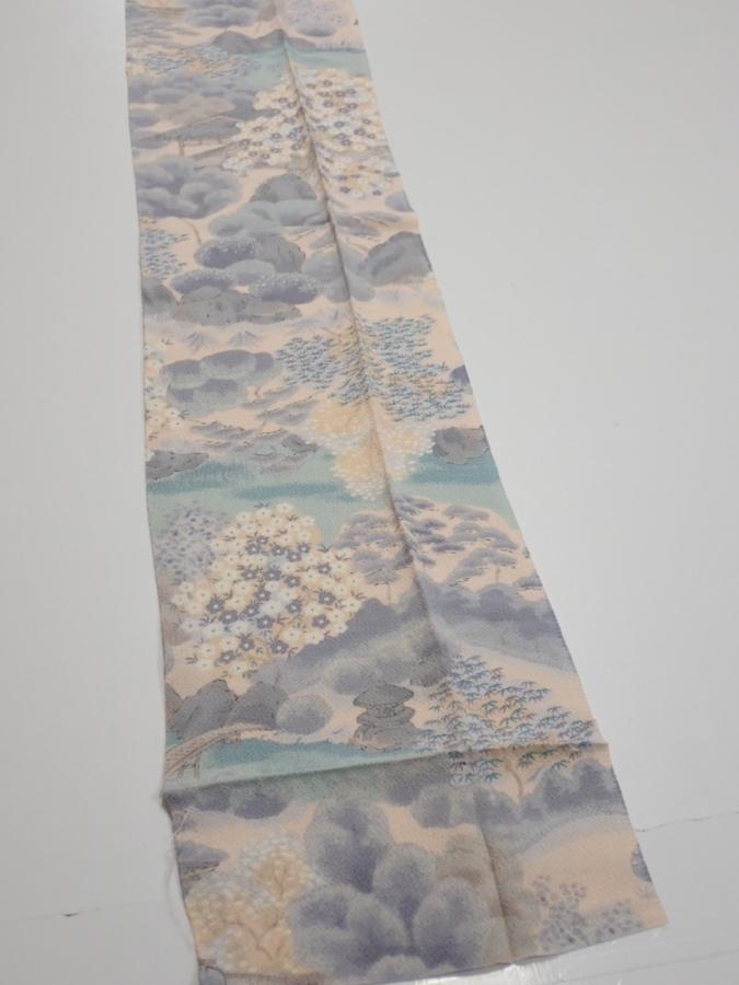4A08z70 Japanese Kimono Crepe Silk FABRIC Japanese palace garden 86.6x7.1