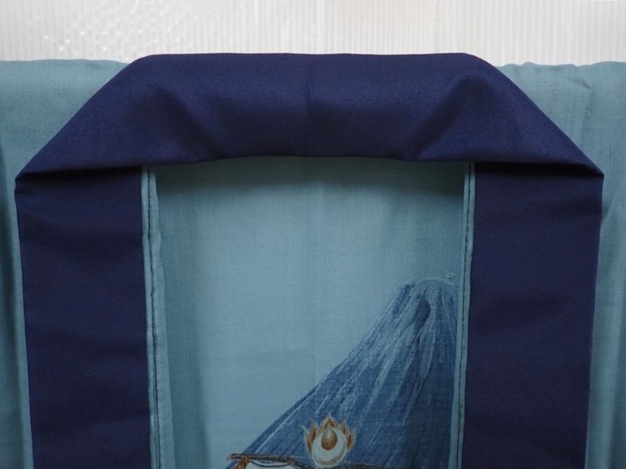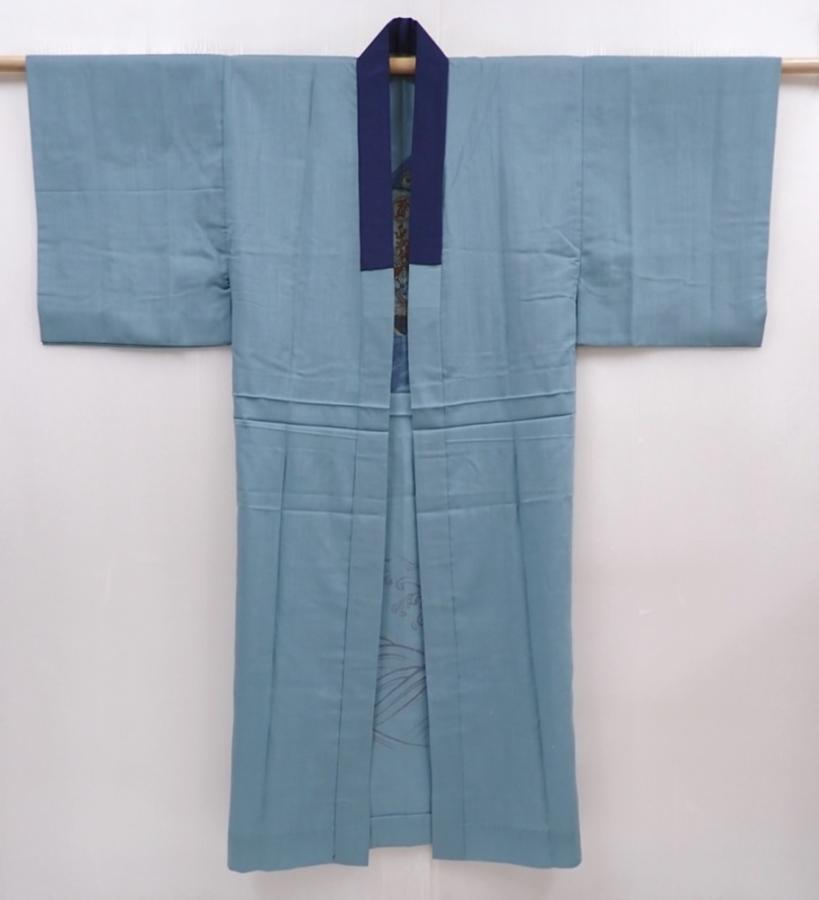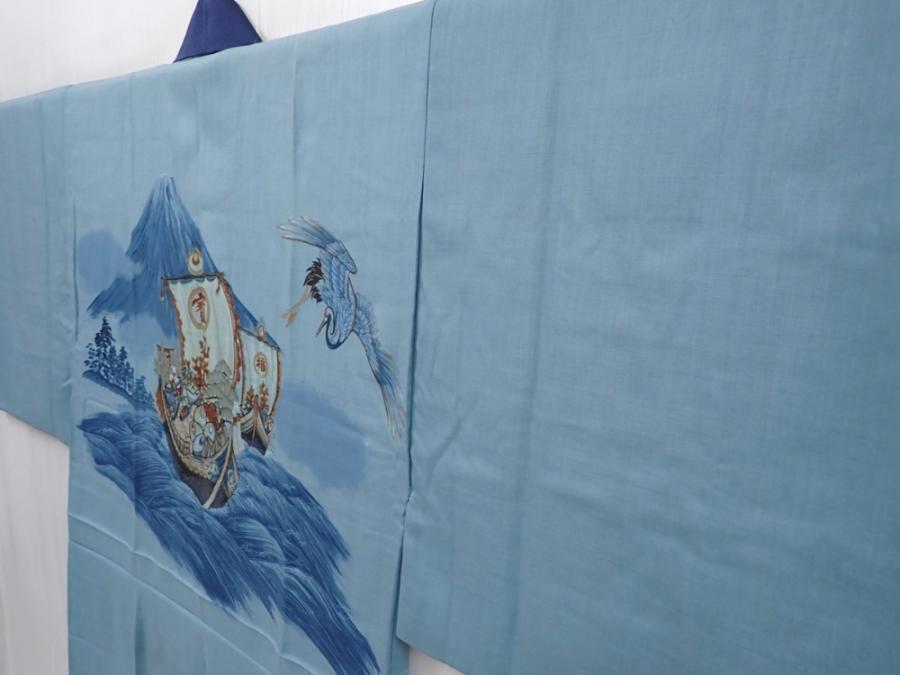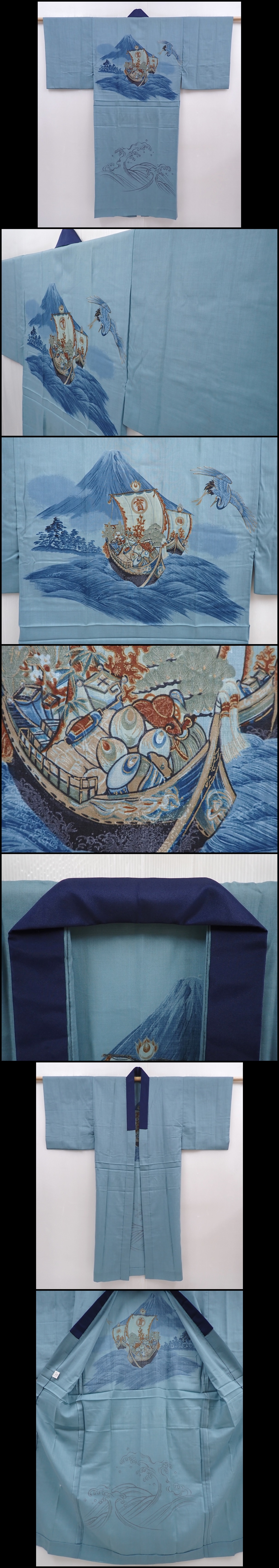 6019T02z420 Vintage Japanese Kimono Muslin JUBAN Treasure Ship Dull cyan