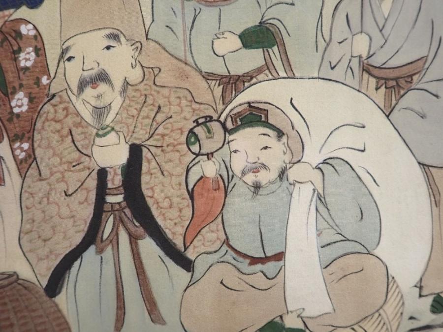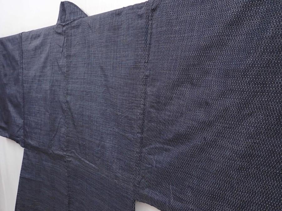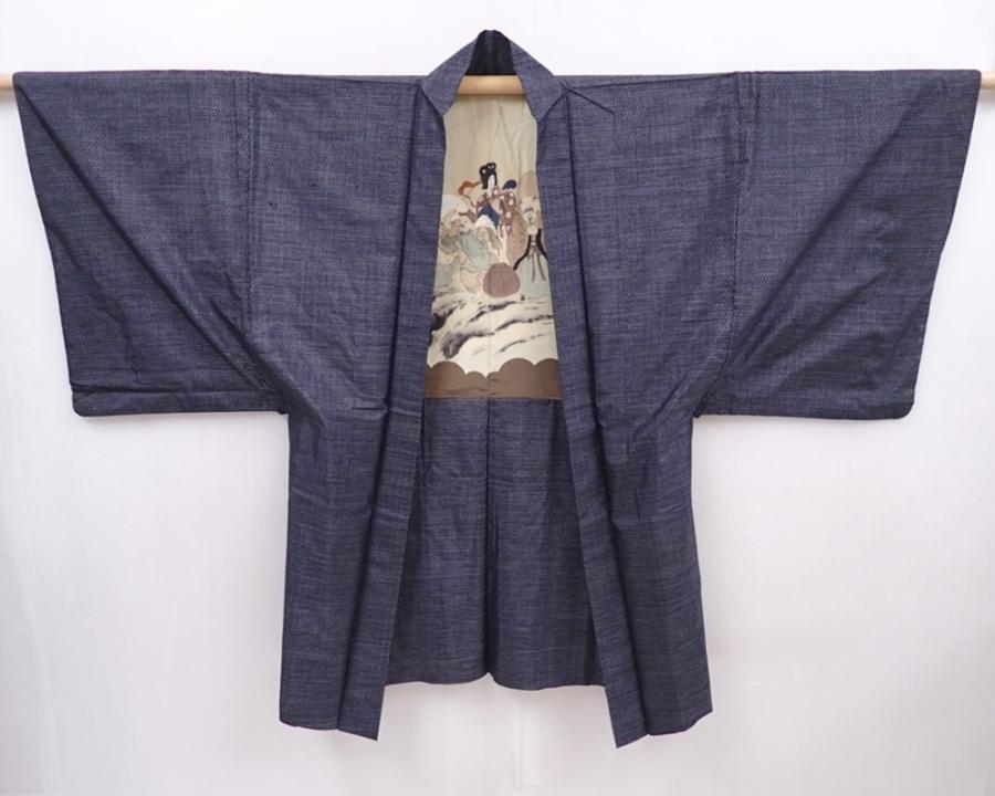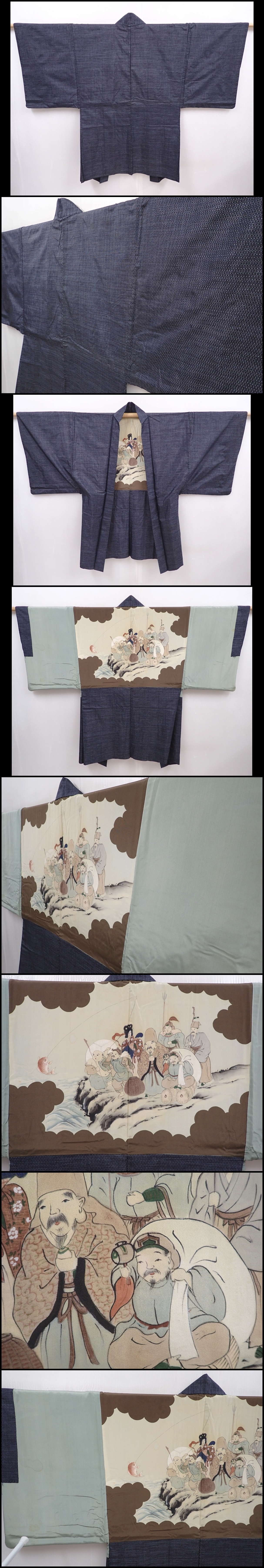 6019T08z540 Vintage Japanese Kimono Silk Men's HAORI 七福神 Dark gray