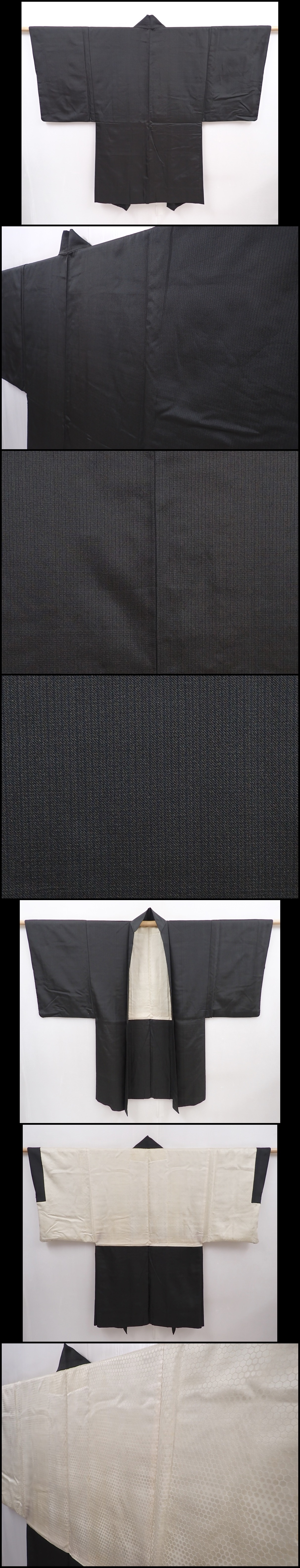 6019T11z630 Vintage Japanese Kimono Silk Men's HAORI Dark Green-Gray