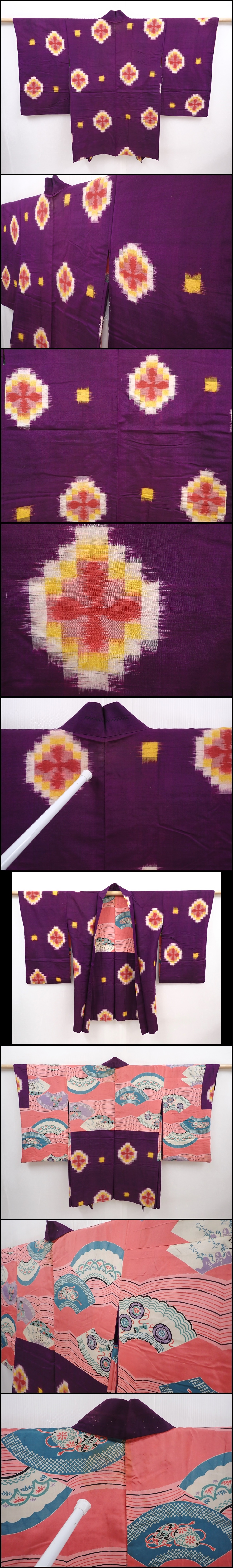 6023T11z440 Antique Japanese Kimono Silk MEISEN HAORI Flower Dark purple