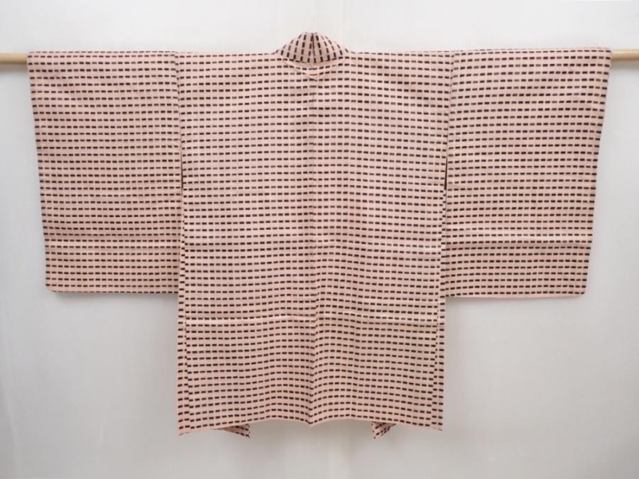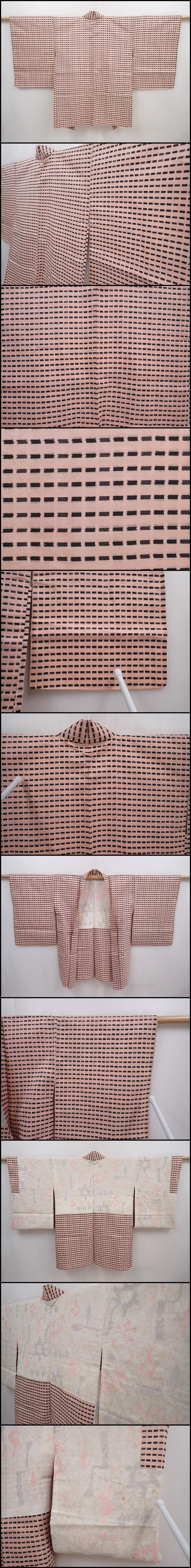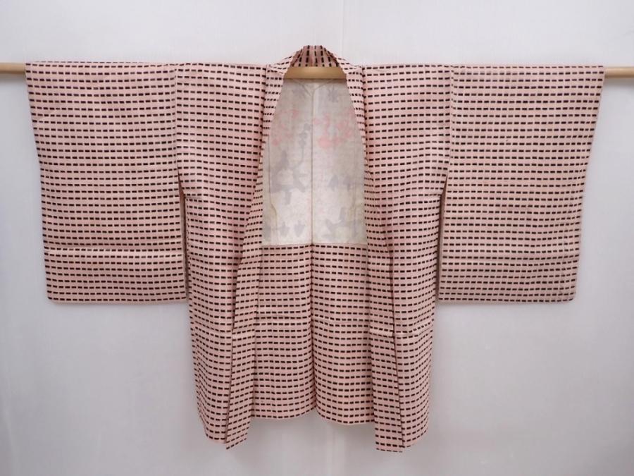 6023T13z480 Vintage Japanese Kimono Silk MEISEN HAORI Light pink