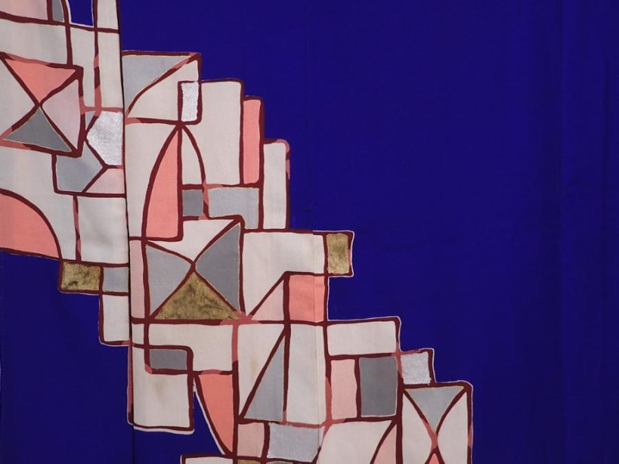 6024T10z710 Antique Japanese Kimono Silk TSUKESAGE Dark lavender blue