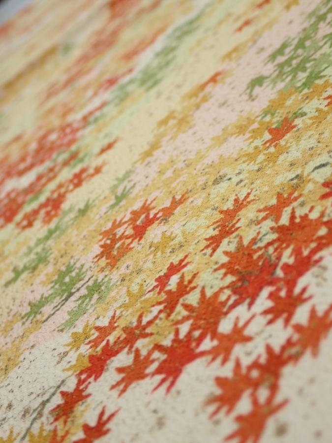 4C02z70 Japanese Kimono Silk FABRIC Maple Light yellow 44.1x14.4