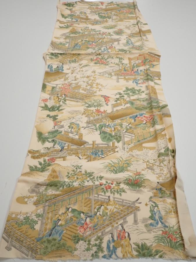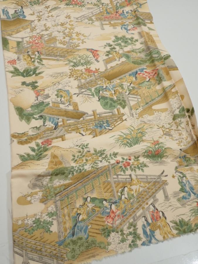 4C05z60 Japanese Kimono Silk FABRIC Princess Light beige 36.2x14.6