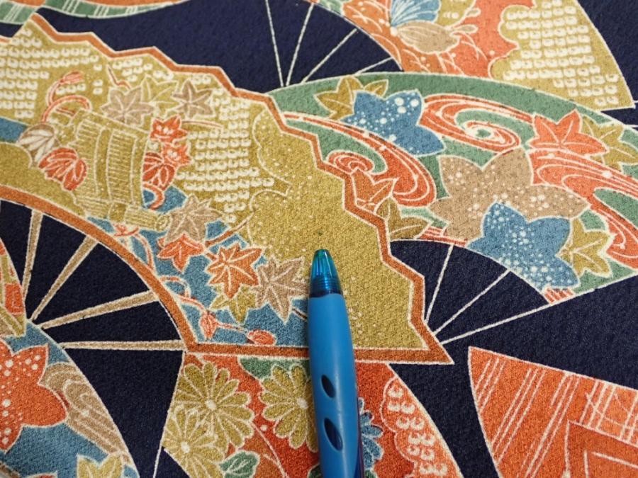 4C03z90 Japanese Kimono Silk FABRIC Sensu Dark navy 64.6x14.2