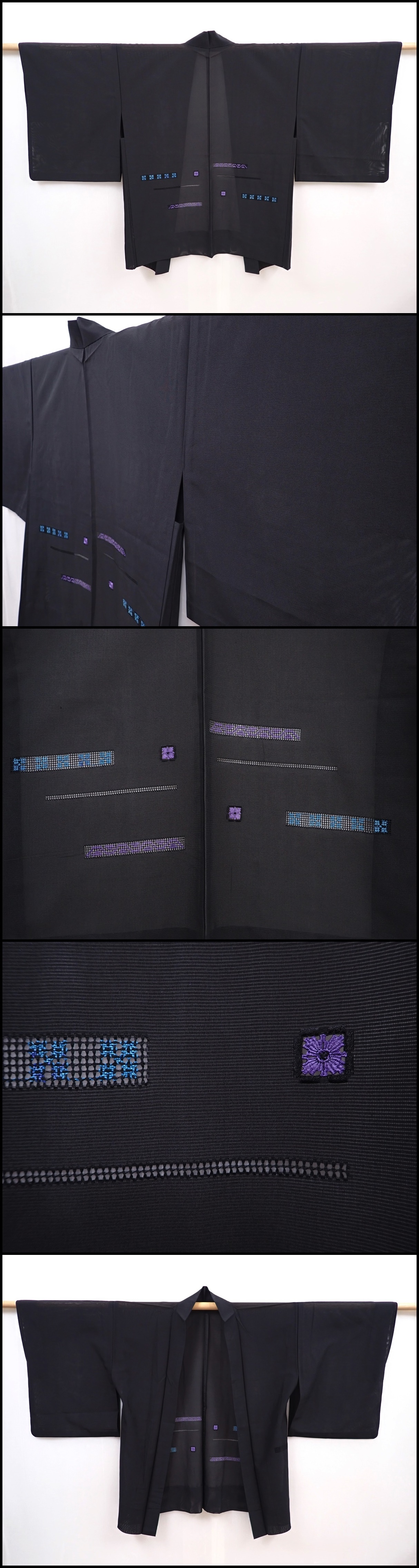 6105T01z270 Vintage Japanese Kimono Silk See through HAORI Black
