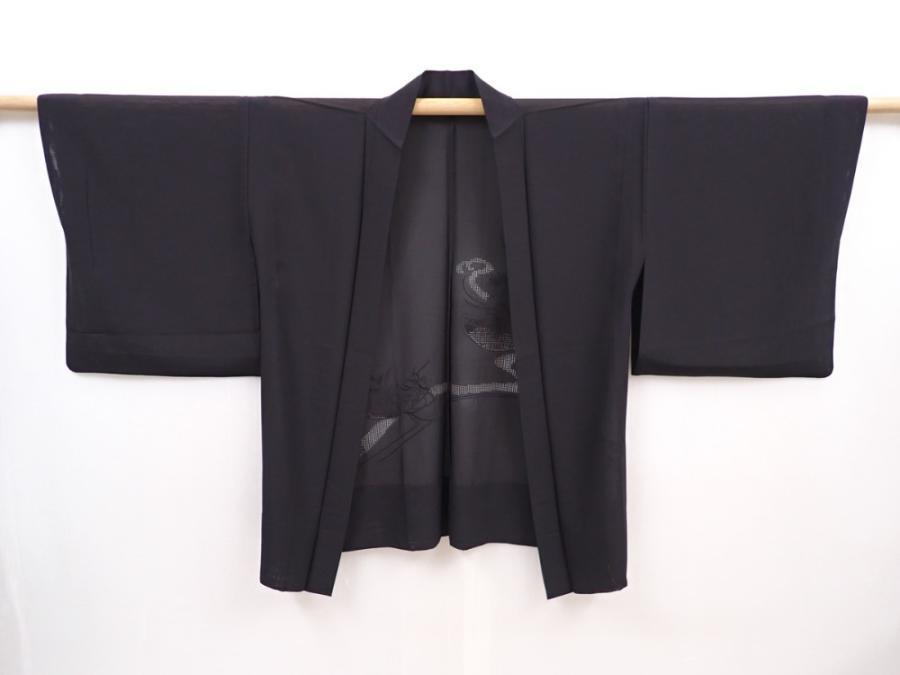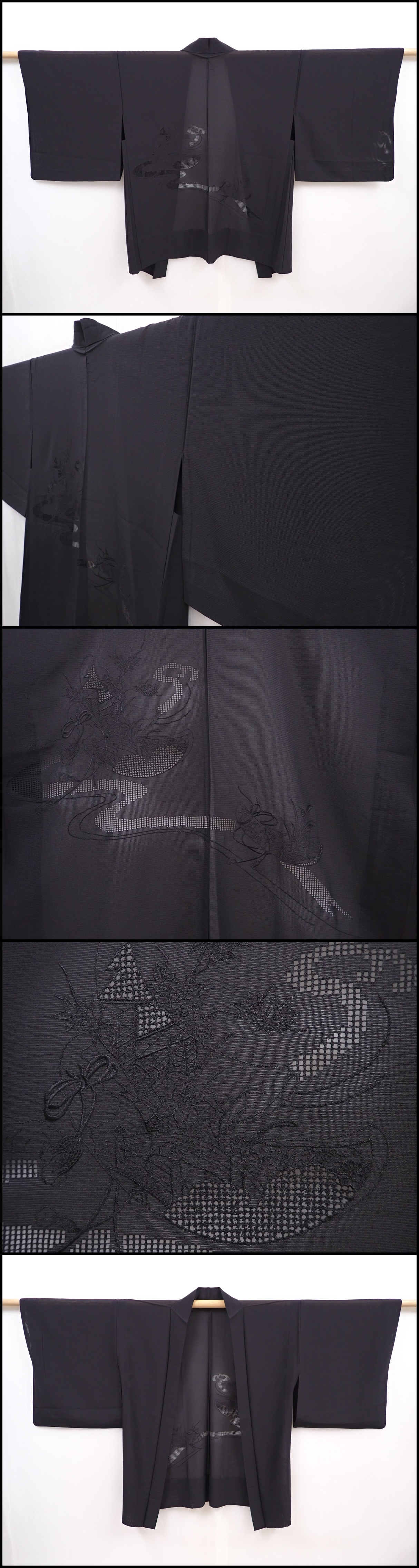 6105T04z300 Vintage Japanese Kimono Silk See through HAORI Stream Black