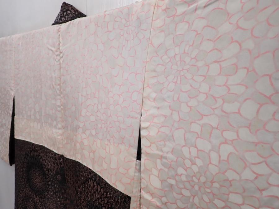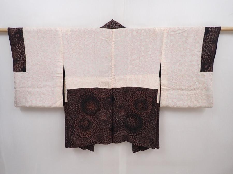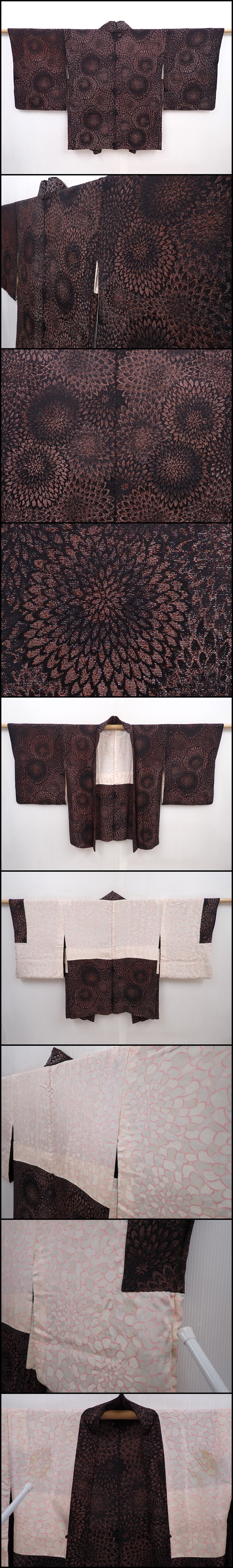 6105T06z660 Vintage Japanese Kimono Silk HAORI Chrysanthemum Black
