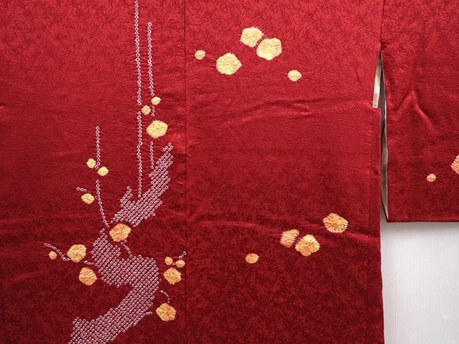 6105T07z530 Vintage Japanese Kimono Silk HAORI Plum tree Wine red