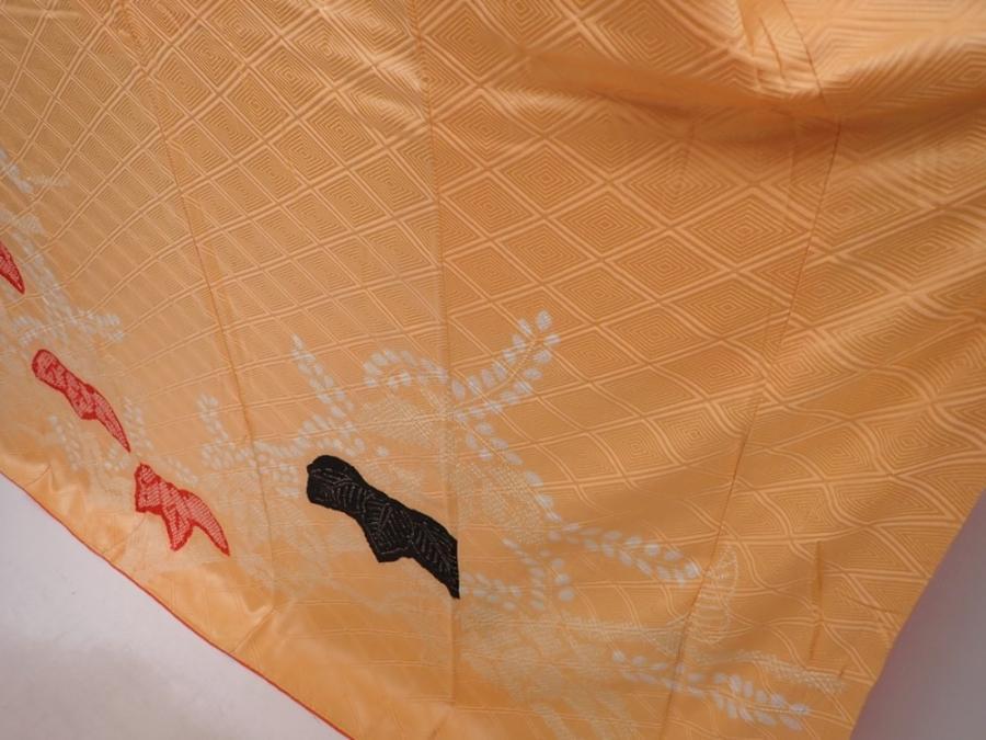 6105T12z1150 Vintage Japanese Kimono Silk FURISODE Paulownia Cream-Orange