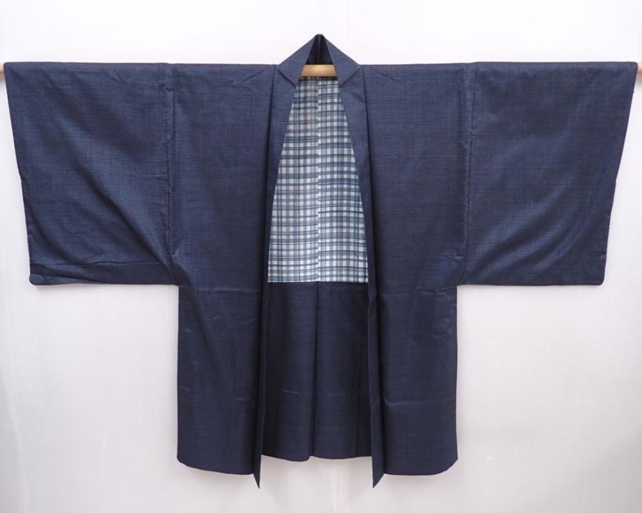 6106T05z490 Vintage Japanese Kimono Silk Men's OSHIMA HAORI Navy-Gray