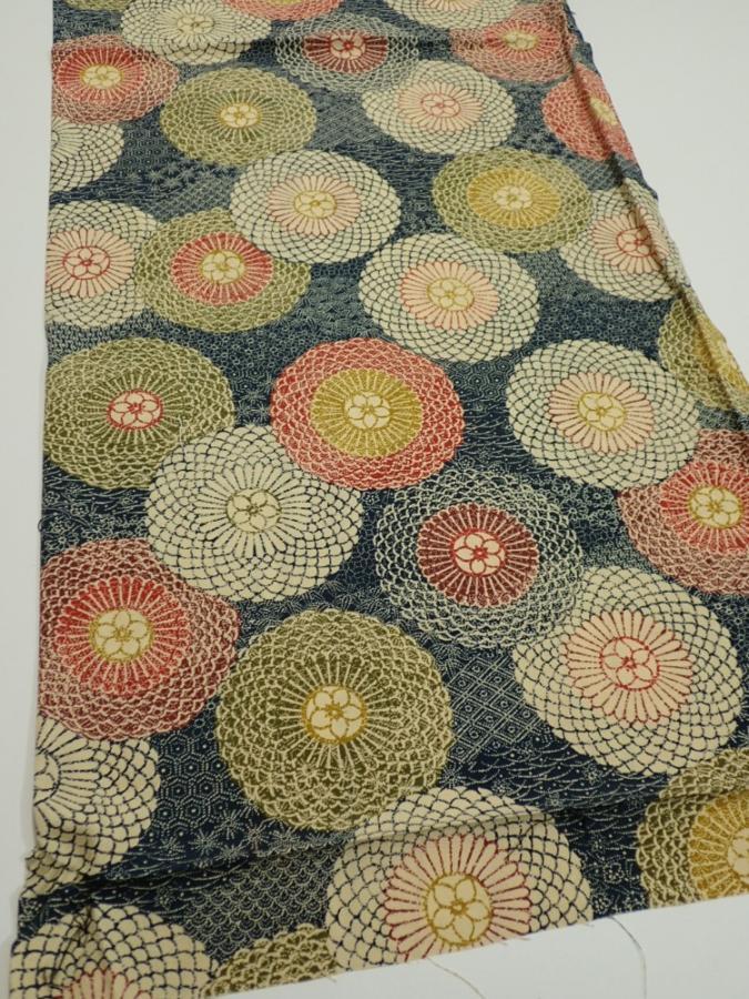 3P01z60 Japanese Kimono Silk FABRIC Chrysanthemum Navy 41.3x14.4
