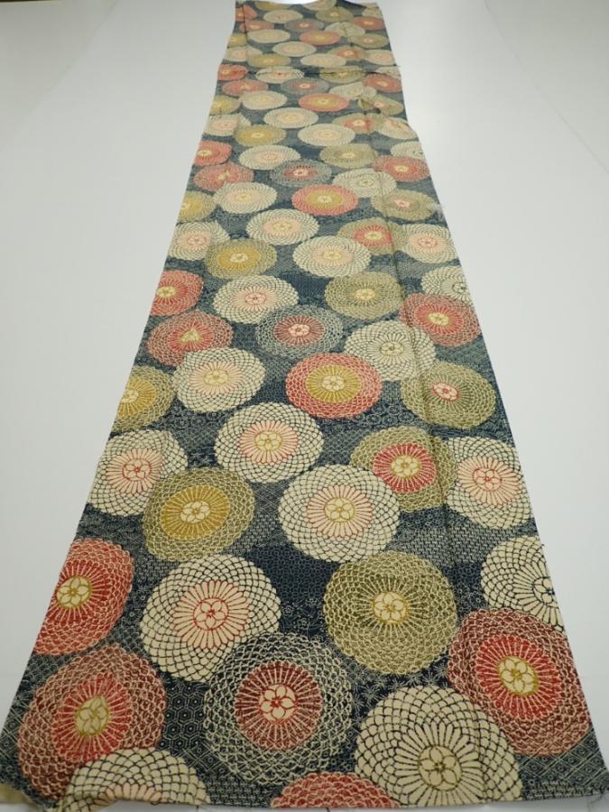 3P06z90 Japanese Kimono Silk FABRIC Chrysanthemum Navy 66.9x14.4