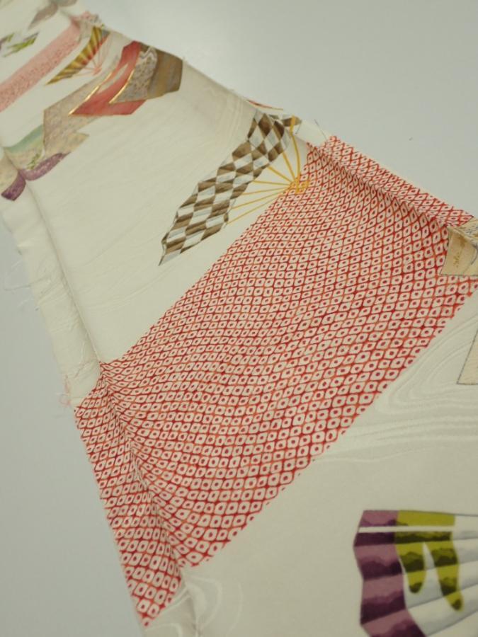 3P08z50 Japanese Kimono Silk FABRIC Folding fan Off-white 65.4x7.7