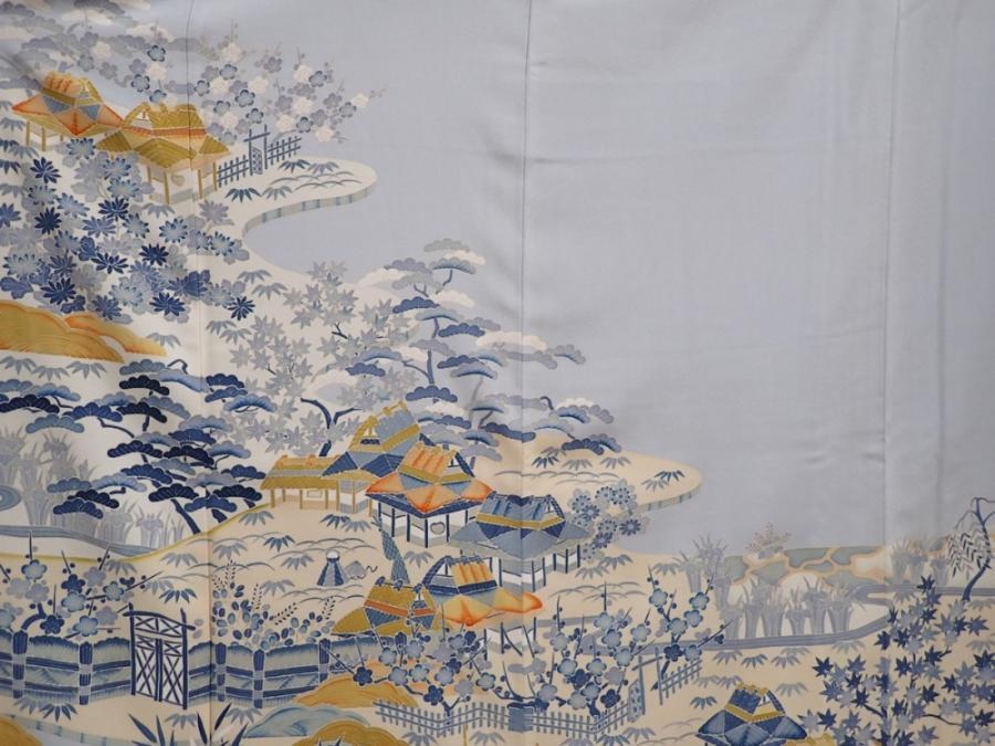 6109T14z1170 Japanese Kimono Silk Artst work IROTOMESODE Garden Dull light blue
