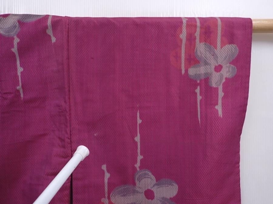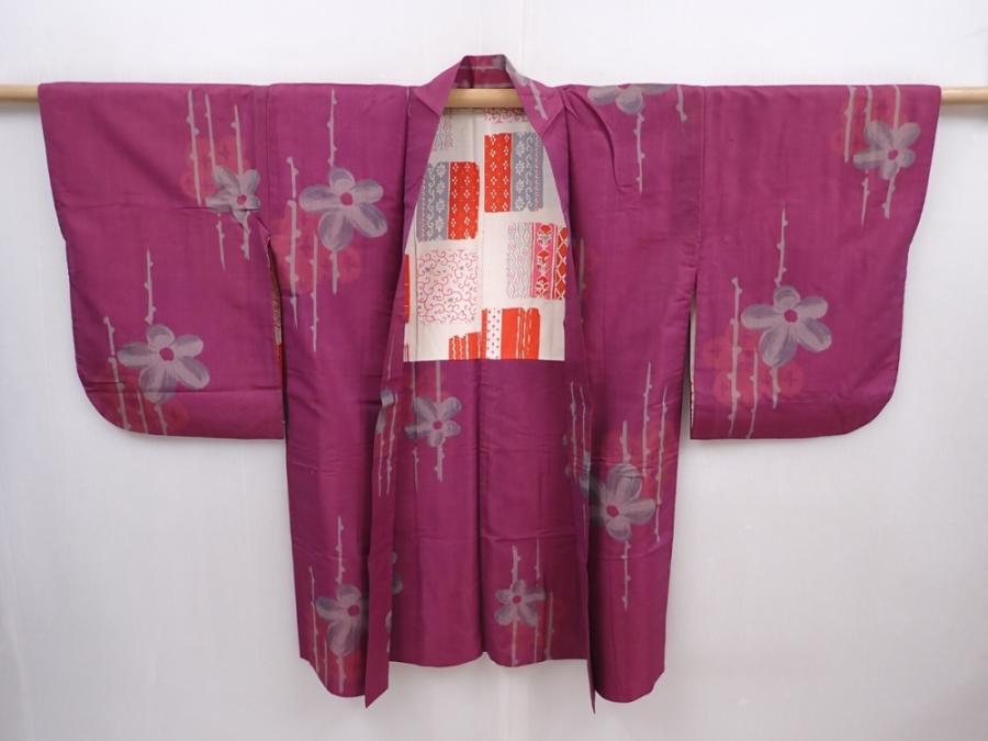 6109T02z500 Vintage Japanese Kimono Silk HAORI Flower Purple-Pink