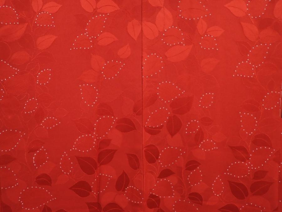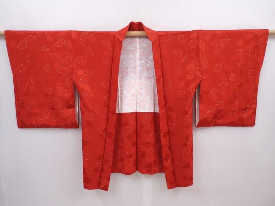 6109T03z580 Vintage Japanese Kimono Silk HAORI Leaf Dark red