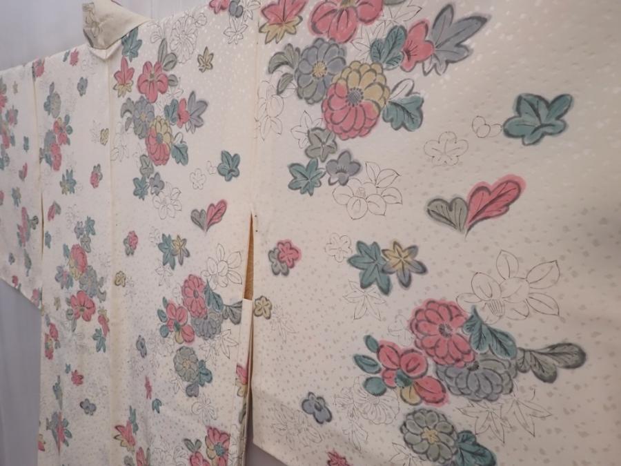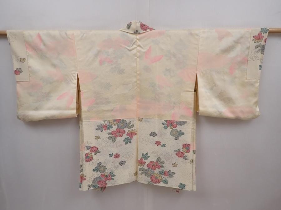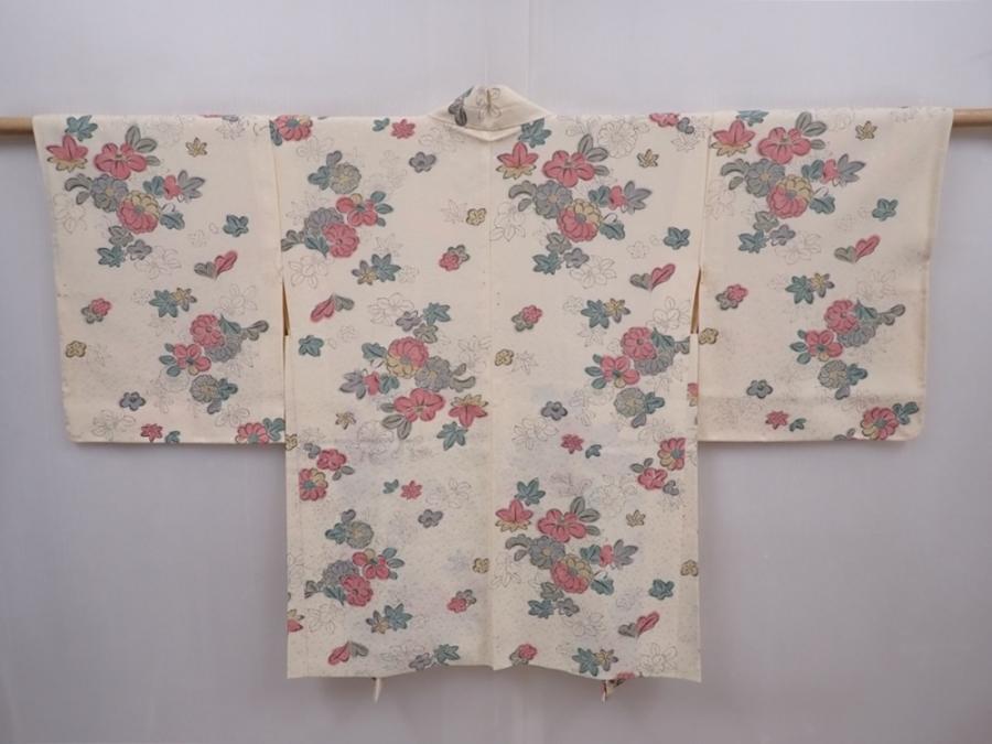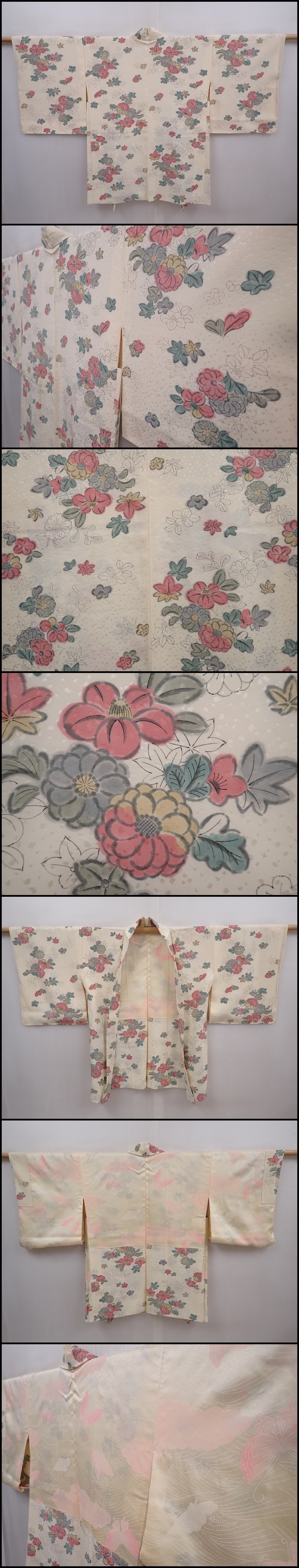 6109T06z500 Vintage Japanese Kimono Silk HAORI Flowers Off-white