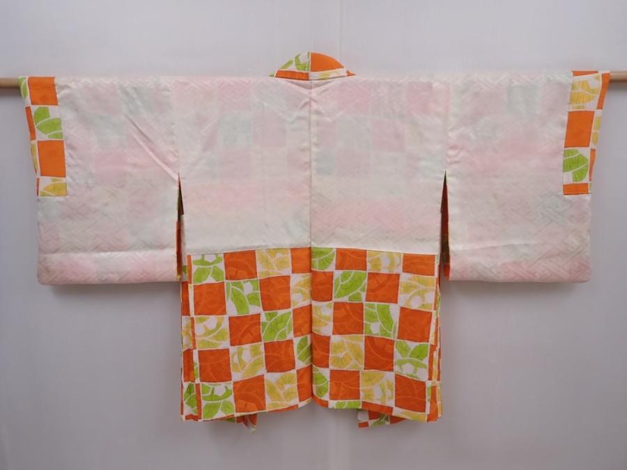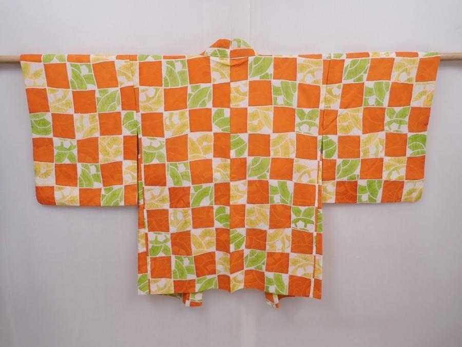 6109T07z590 Vintage Japanese Kimono Silk HAORI Orange
