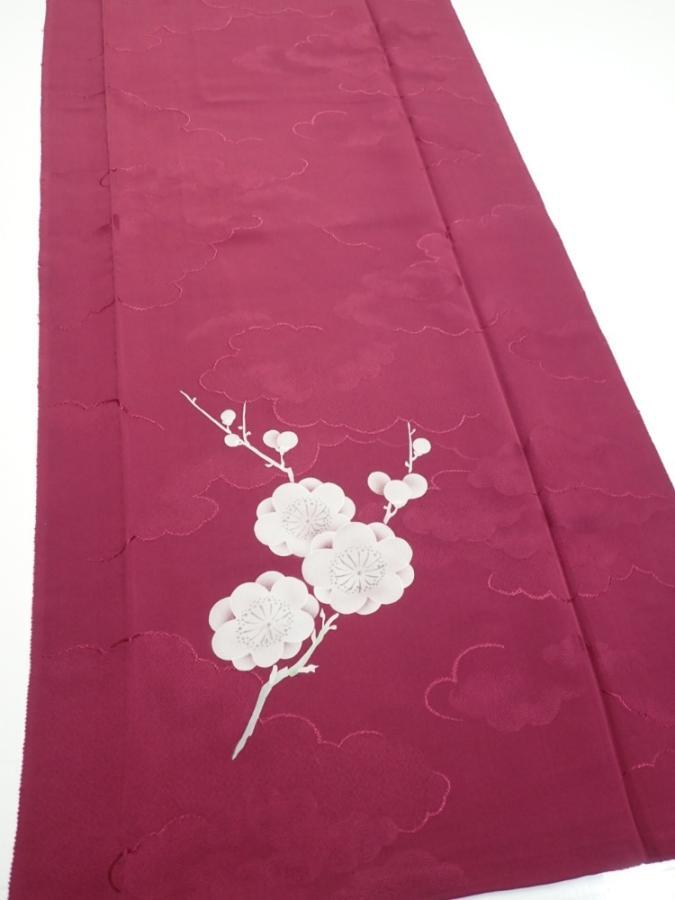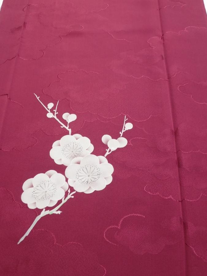 3i03z90 Japanese Kimono Silk FABRIC Plum branch Wine red 67.7x14.4