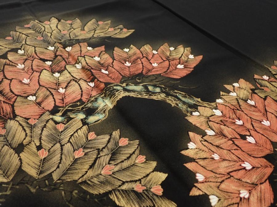 3i02z230 Japanese Kimono Silk FABRIC Pine Black 58.3x28.3