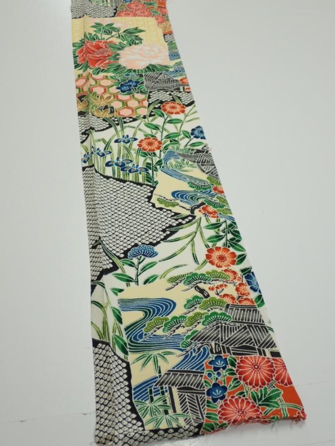 3i08z40 Japanese Kimono Silk FABRIC Flowers Off-white 58.3x7.3
