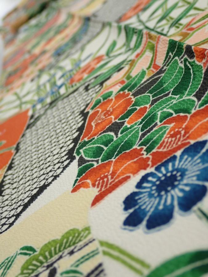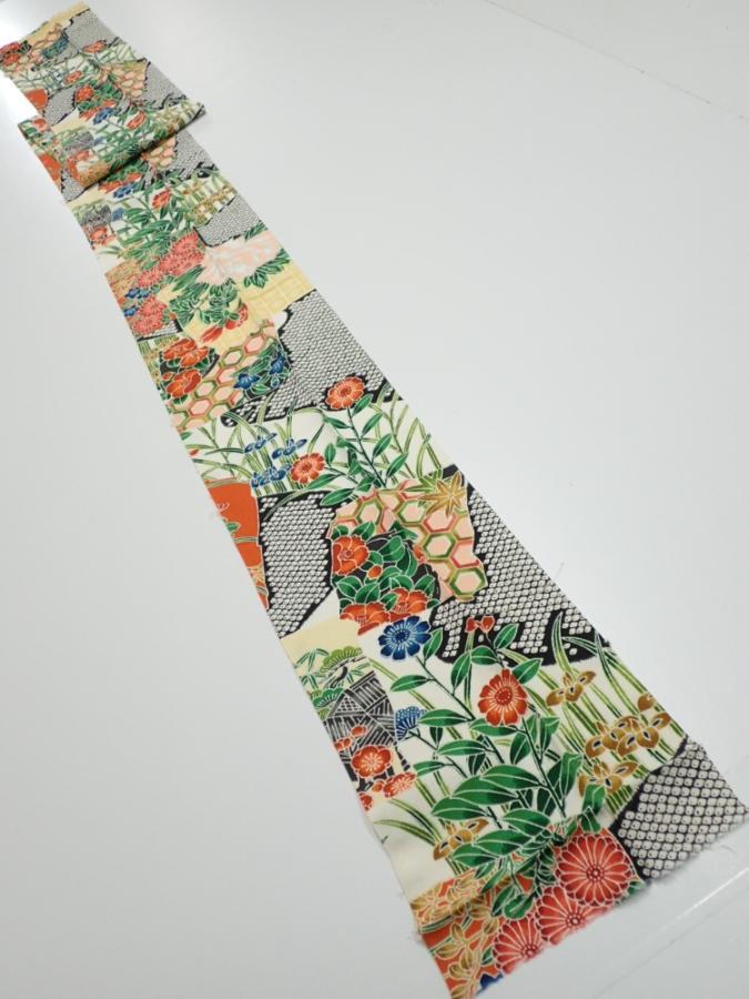 3i09z60 Japanese Kimono Silk FABRIC Flowers Off-white 84.3x7.3