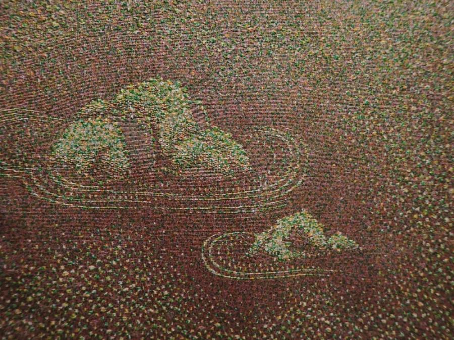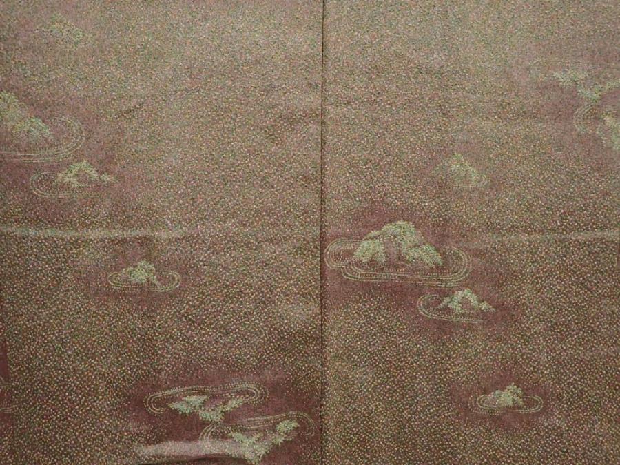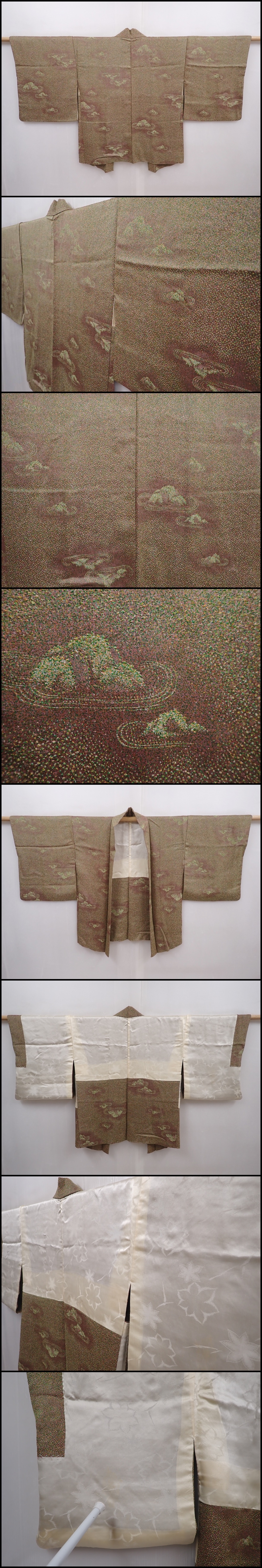 6113T01z550 Vintage Japanese Kimono Silk HAORI Karesansui Olive-Brown